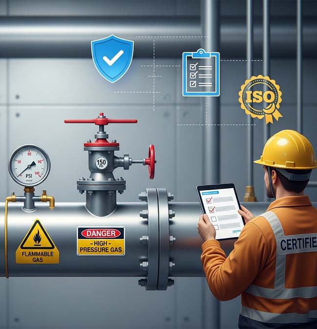 Pipelines are pressure tested, fitted with approved valves, and supported by preventive maintenance & emergency shut-off systems.